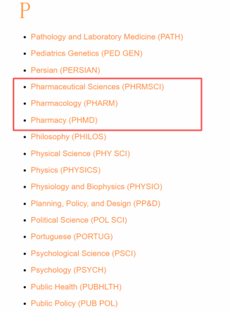 【我校学生选课范围】:药学类相关课程(PHRMSCI、PHARM、PHMD类,见下图)