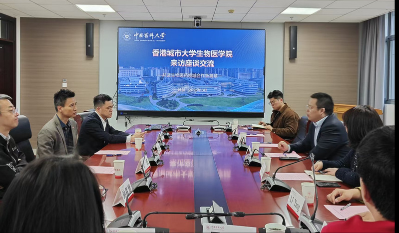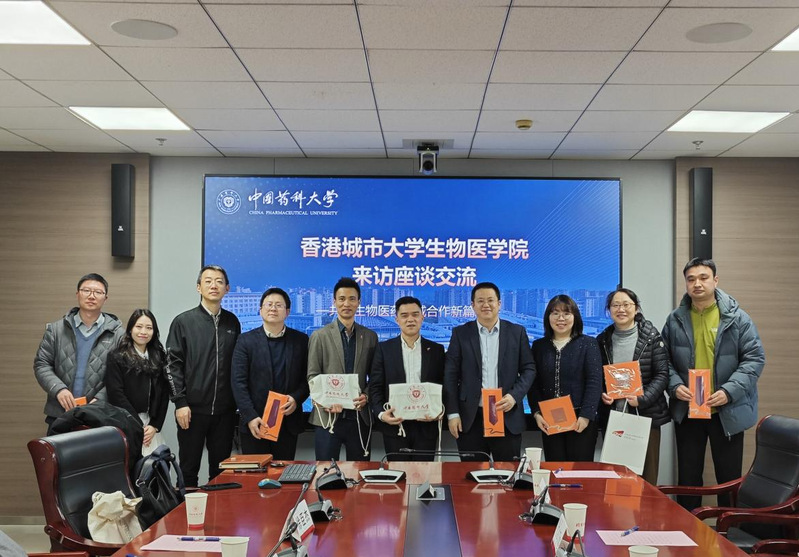 姚和权代表中国药科大学对刘俊宇一行表示诚挚欢迎,介绍了我校发展历程、学科特色及国际合作概况。他表示,中国药科大学作为中国药学教育的领军高校,始终致力于推动药学领域的创新研究与人才培养,期待与香港城市大学生物医学院在研究生联合培养、科研项目合作等方面开展务实合作,共享前沿科研成果,为全球健康事业贡献中港双方的智慧。刘俊宇副院长介绍了香港城市大学生物医学院的发展概况、学科布局及研究生培养体系。他表示,香港城市大学高度重视与内地高校的交流合作,生物医学院在生物医学科学领域具有鲜明特色,期待与中国药科大学在人才培养、科学研究等方面建立长效合作机制。