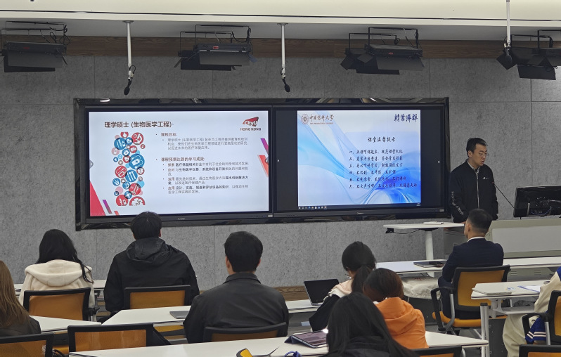 会后,香港城市大学来访团组举办硕士、博士项目专场宣讲会。刘俊宇副院长及张亮副教授分别就香港城市大学生物医学院的学科优势、研究方向、师资力量、奖学金政策及申请流程等进行了详细介绍。同学们认真聆听,积极提问,围绕项目申请条件、研究方向匹配、就业前景等问题与港方教授进行了热烈互动。